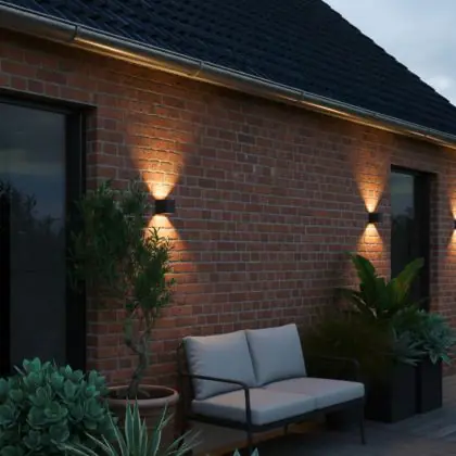 D'Lite Wall Light Elingen Aluminium Black Up & Down 4.9W 480lm - 830 Warm White | IP65 - Light Sensor