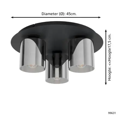 Eglo Ceiling Light Gorosiba 1 Steel Black | IP20 - Suitable for 3x E27