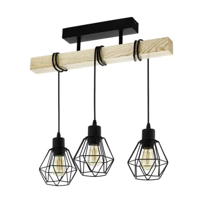Eglo Ceiling Light Townshend 5 Steel Wood Black | IP20 - Suitable for 3x E27
