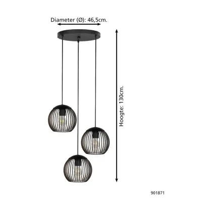 Eglo Pendant Almanzora Steel Black Copper | IP20 - Suitable for 3x E27