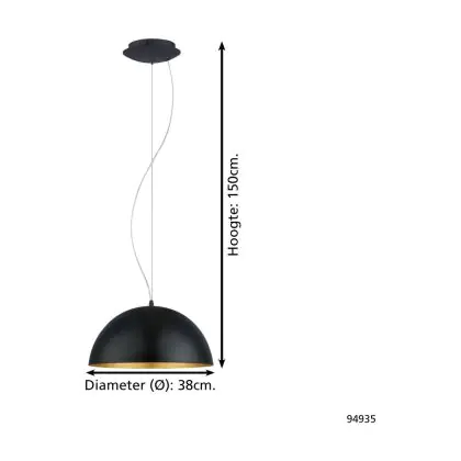 Eglo Pendant Gaeta 1 Steel Black Gold | IP20 - Suitable for 1x E27