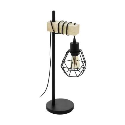 Eglo Table Lamp Townshend 5 Steel Wood Black | IP20 - Suitable for 1x E27