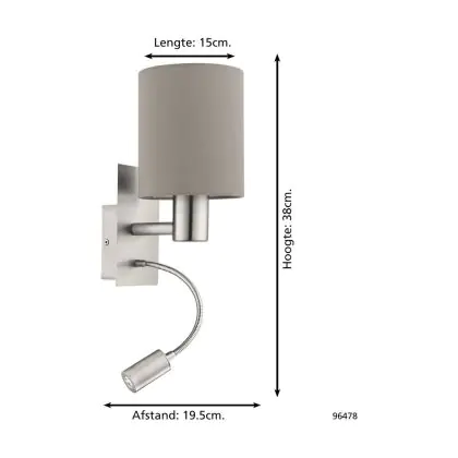 Eglo Wall Light Pasteri Steel Satin Nickel 40 | IP20 - Incl. Spot and Excl. 1x E27