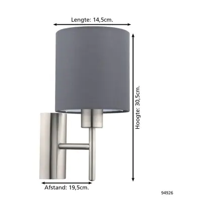Eglo Wall Light Pasteri Steel Satin Nickel | IP20 - Suitable for 1x E27