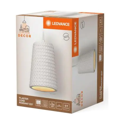 Ledvance Decor Plaster/Steel Cone Pendant White | Suitable for E27