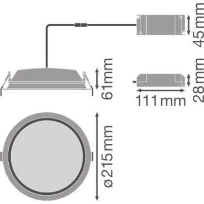 Description Ledvance LED Downlight Alu DN200 25W 2250lm 100D - 830 Warm White | 215mm - IP44