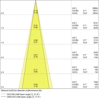 ![]() The colour code is a combination of colour rendering (CRI) and light colour (Kelvin). The first number indicates the colour rendering (1 = very poor colour rendering, 9 = maximum colour fastness). The second and third number contains the light colour. Example: the colour code 830 consists of good colour rendering (8) and warm white light (3000K). |