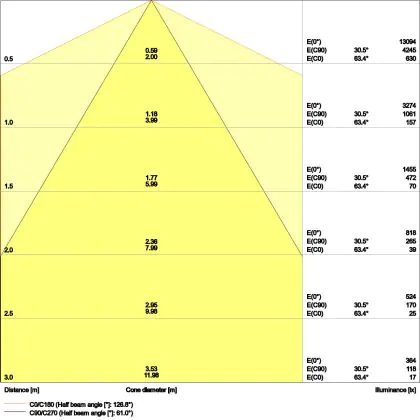 ![]() The colour code is a combination of colour rendering (CRI) and light colour (Kelvin). The first number indicates the colour rendering (1 = very poor colour rendering, 9 = maximum colour fastness). The second and third number contains the light colour. Example: the colour code 830 consists of good colour rendering (8) and warm white light (3000K). |