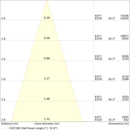 The Luminous Efficacy (lm/W) indicates how efficiently a light source uses energy. We divide the number of lumens by the wattage. The higher the number, the more efficient a product is in terms of energy consumption. LED lighting has a considerably higher lumen/Watt ratio than conventional lighting.