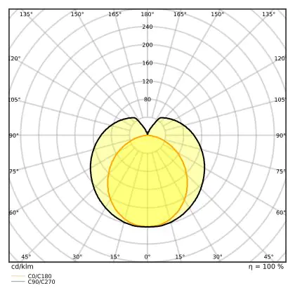 The Luminous Efficacy (lm/W) indicates how efficiently a light source uses energy. We divide the number of lumens by the wattage. The higher the number, the more efficient a product is in terms of energy consumption. LED lighting has a considerably higher lumen/Watt ratio than conventional lighting.