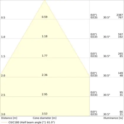 ![]() The colour code is a combination of colour rendering (CRI) and light colour (Kelvin). The first number indicates the colour rendering (1 = very poor colour rendering, 9 = maximum colour fastness). The second and third number contains the light colour. Example: the colour code 830 consists of good colour rendering (8) and warm white light (3000K). |