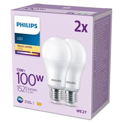 Multipack 2x Philips Bulb LED E27 Pear Frosted 13W 1521lm - 827 Extra Warm White