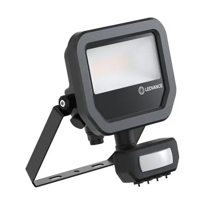 Multipack 4x Ledvance LED Floodlight Aluminium Black 8W 1200lm 100D - 840 Cool White | IP65 - Motion And Light Sensor - Symmetrical