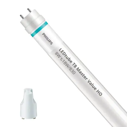 Description Philips LED Tube T8 MASTER Value (EM/Mains) High Output 8W 1000lm - 830 Warm White | 60cm - Replaces 18W