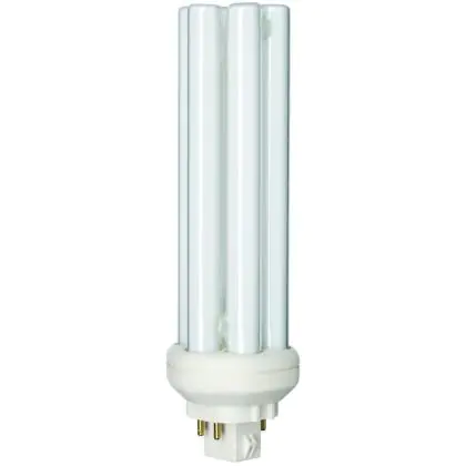 The Philips PL-T TOP 4P lamps are 4 pin socket fluorescent lamps that are very efficient for long run times. They are more efficient than 4P PL-T standard bulbs and their performance is optimized over wide temperature ranges. Philips PL-T TOP 42W 840 4P measure 1500 cm and have a GX24q-4 socket type, which corresponds to a socket with 4 pins.